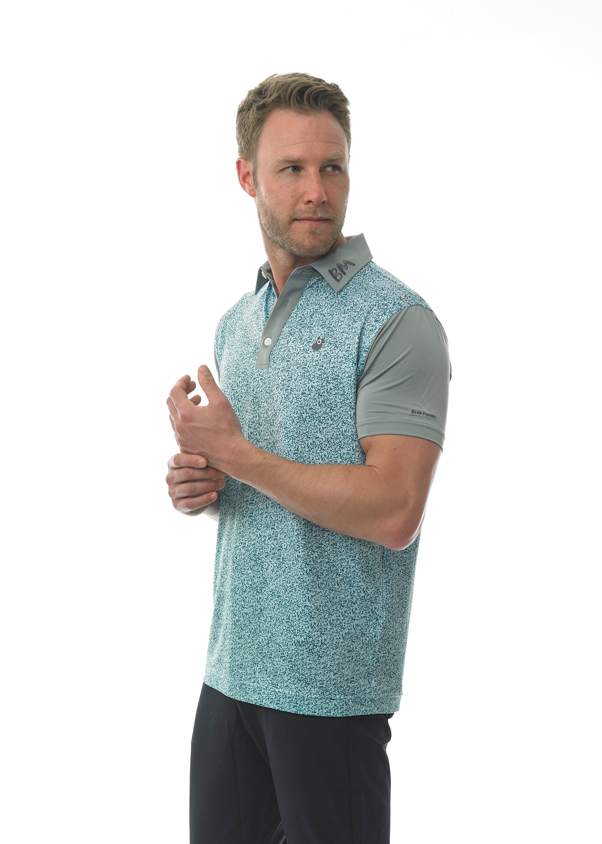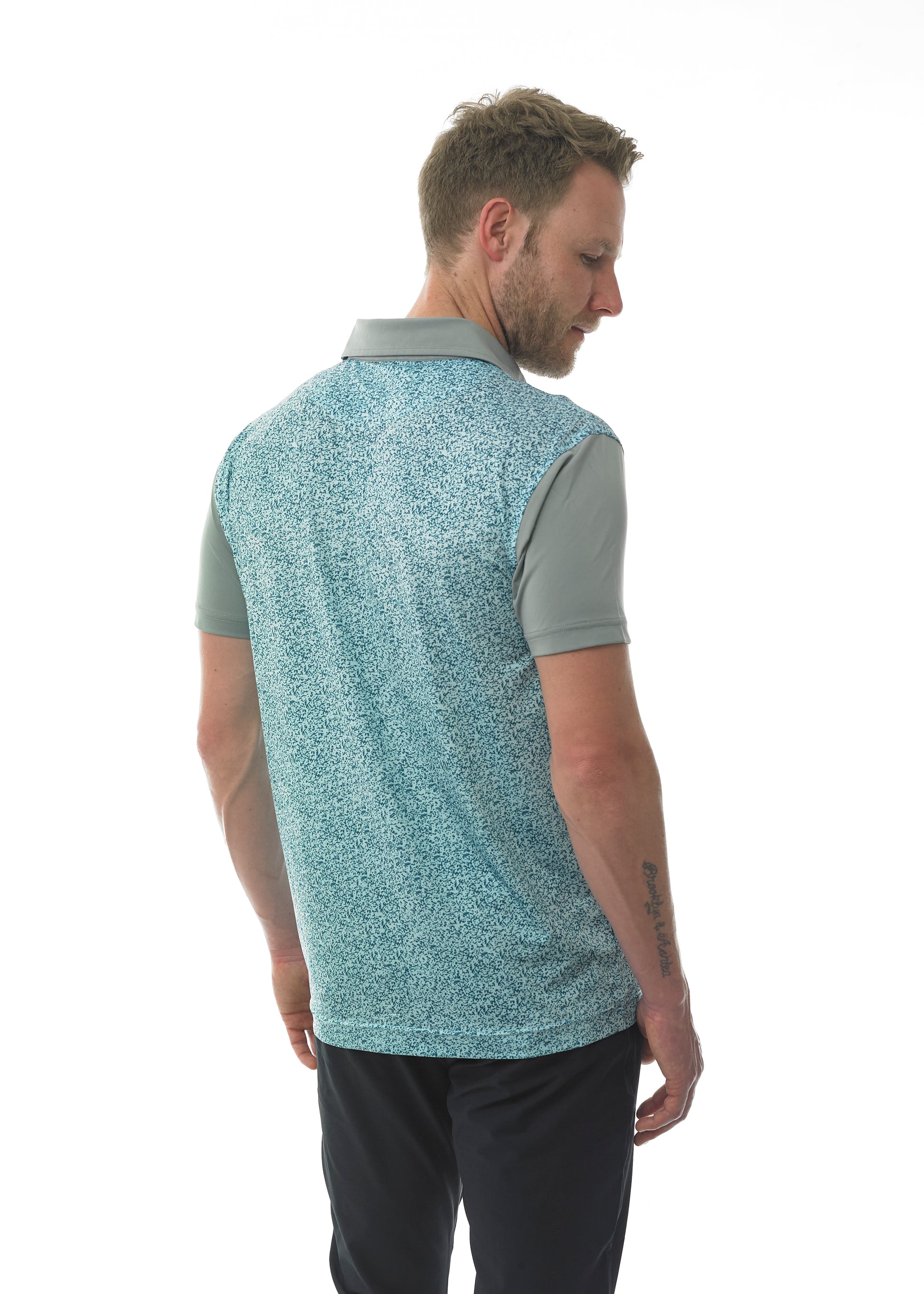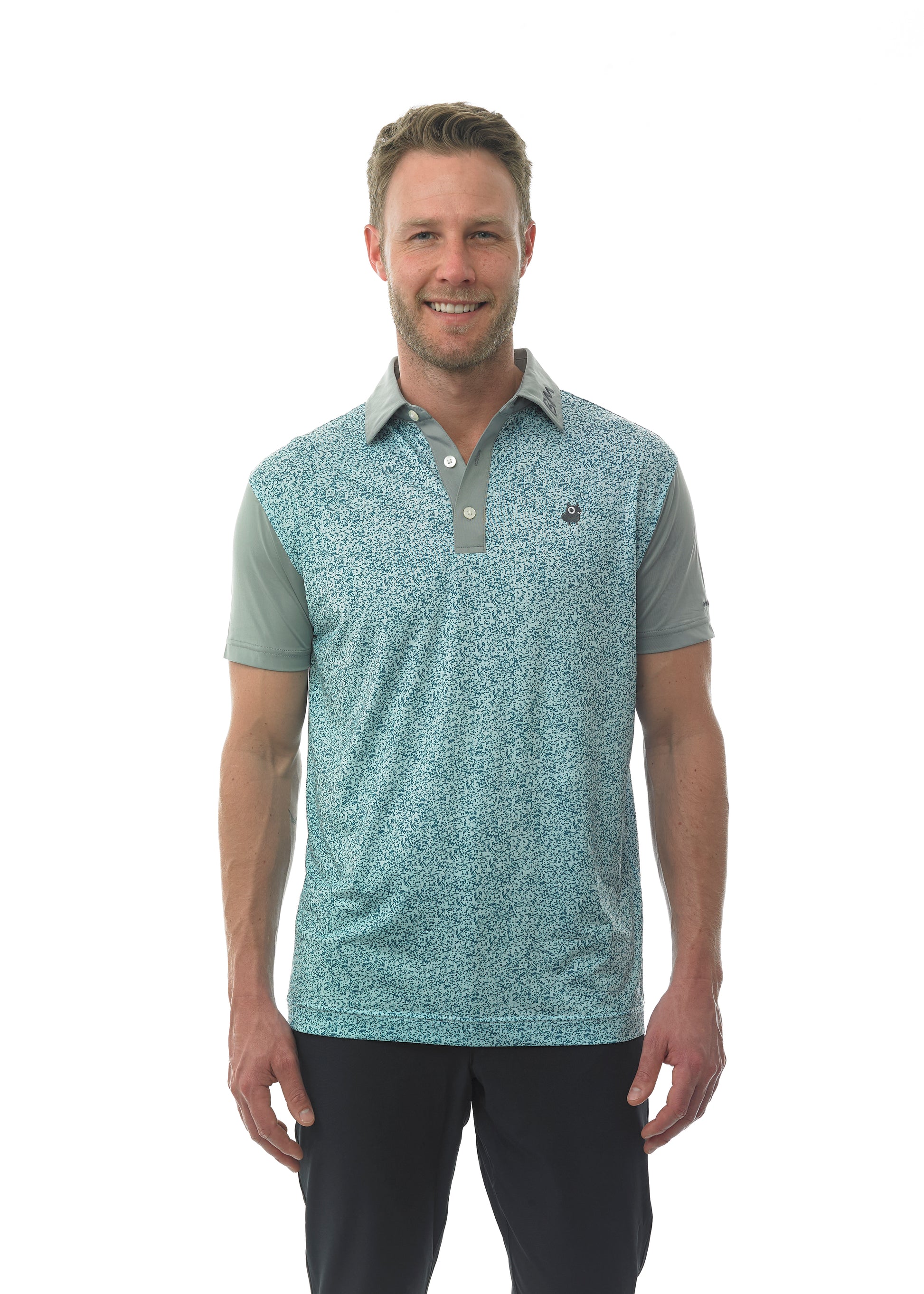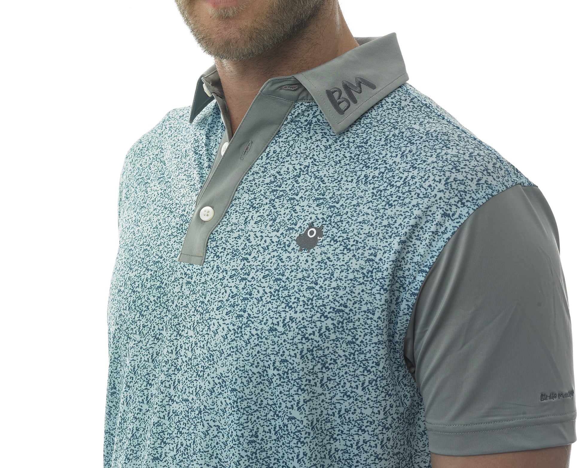 Stay cool and stylish with the "Skyline Breeze" polo. Featuring a sky-blue body and sleek gray sleeves, this shirt blends modern style with top performance. Made from breathable, 4-way stretch fabric, it offers comfort and freedom of movement on and off the course. Perfect for golfers who play with confidence.